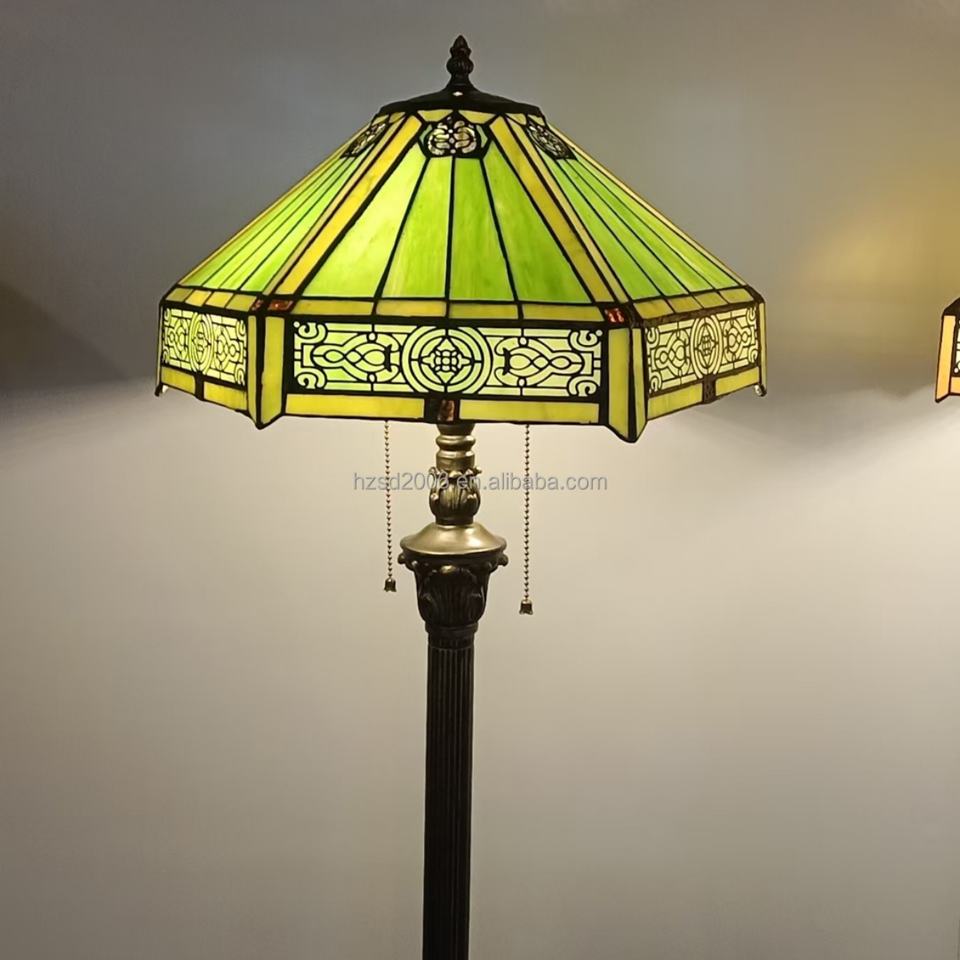 Lampe sur pied Tiffany en verre européen de 16 pouces avec LED pour salle à manger, chambre à coucher, chambre d'enfant, ampoule E27, lumière à économie d'énergie