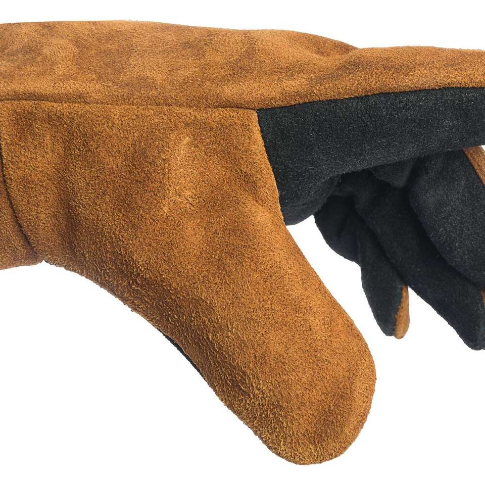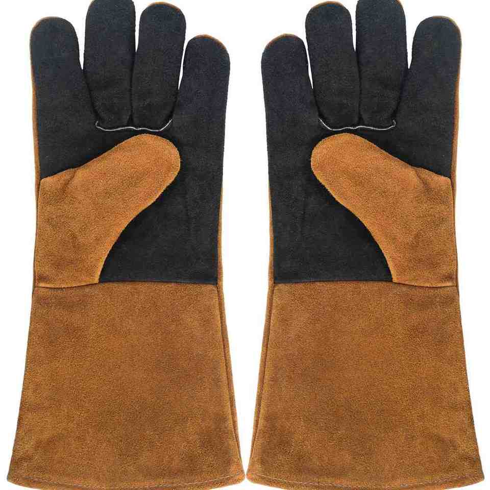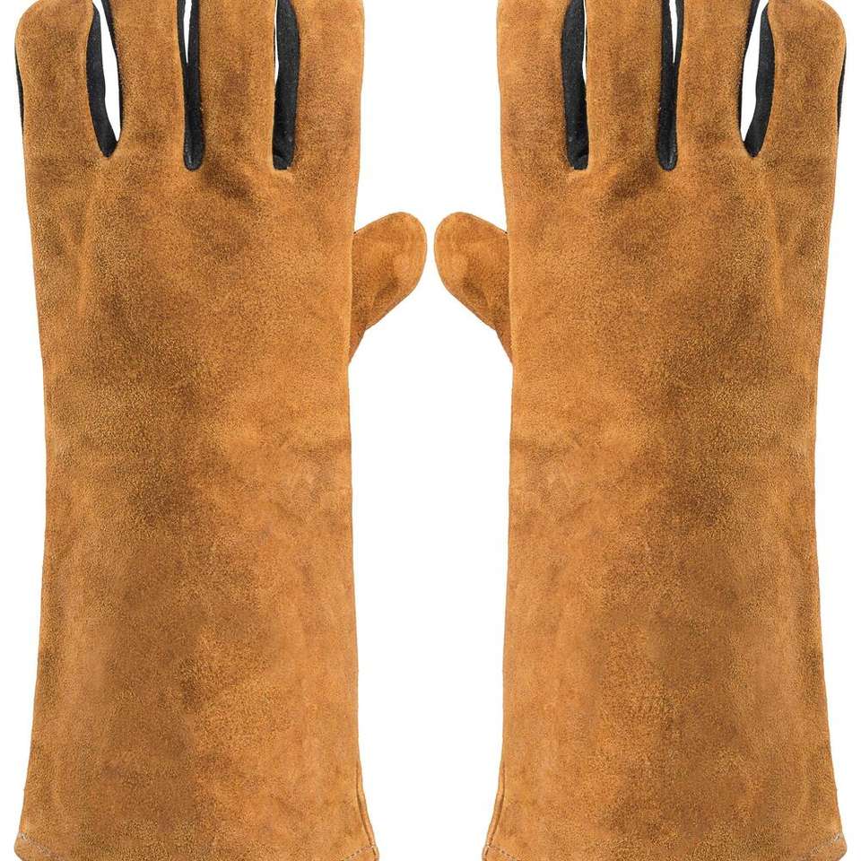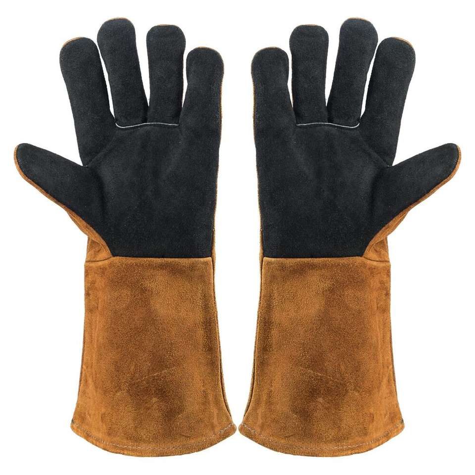 Gants de soudage en cuir de 16 pouces résistants à la chaleur, gants d'isolation thermique pour four à micro-ondes et cuisson, en cuir véritable pour soudeurs