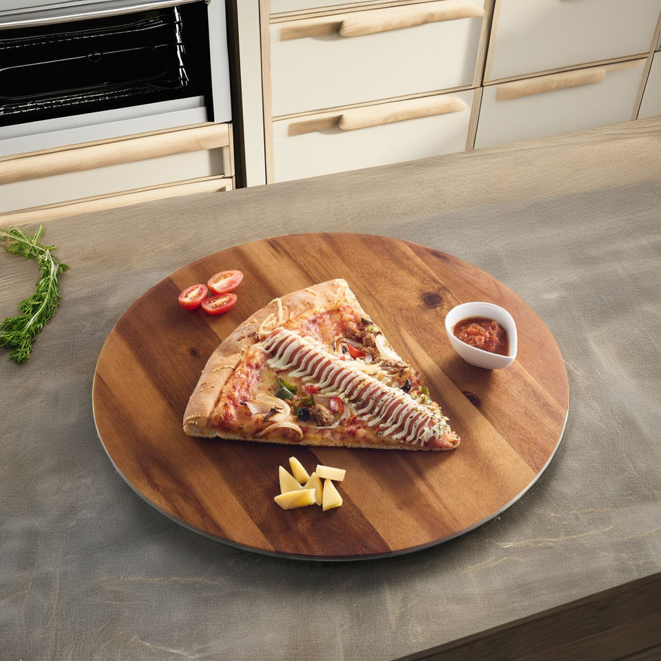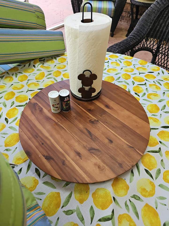 Plateau tournant multifonctionnel 16 pouces en bois d'acacia bambou Lazy Susan Planche à charcuterie rotative pour outils de table à fromage Planche de garde-manger