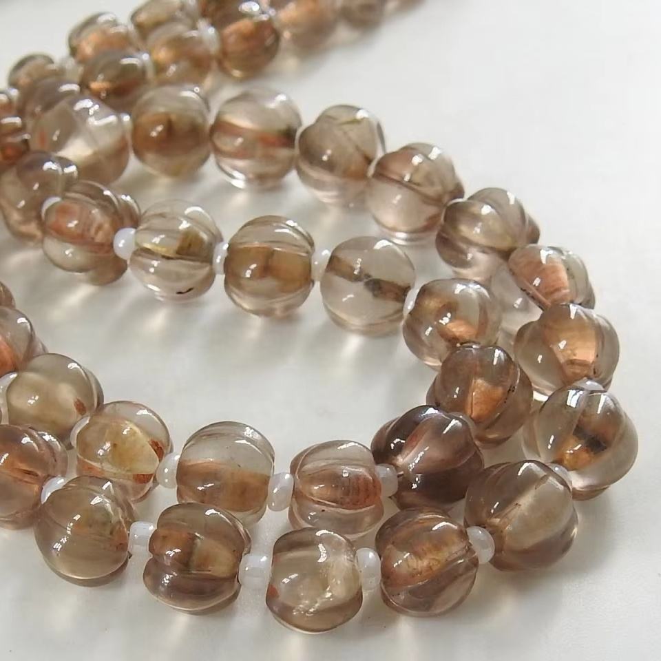 16 pouces clair naturel jardin Quartz spéléologie citrouille forme perle brin 5-10MM pierre ronde pierre organique