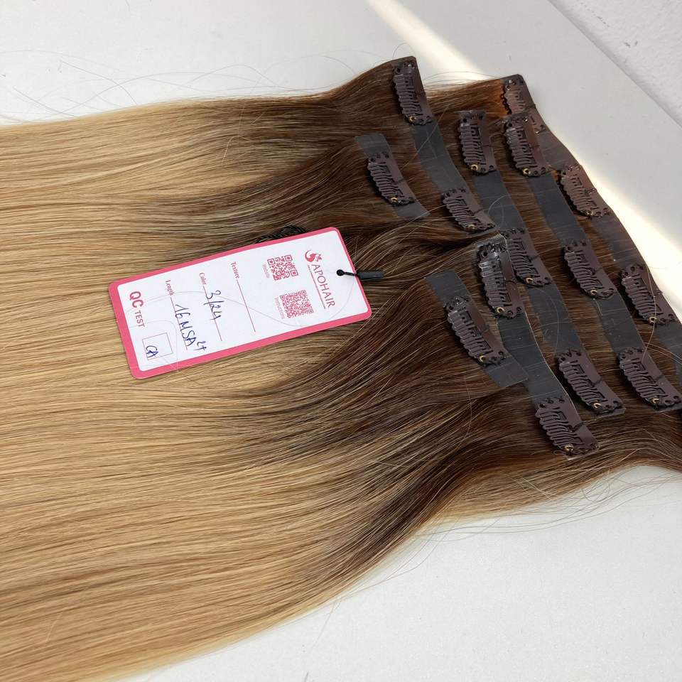 16 Pouces Vierge Brute Double Dessiné Clips dans les Cheveux Ombre Couleur Cuticule Aligné Double Dessiné Extensions de Cheveux Humains