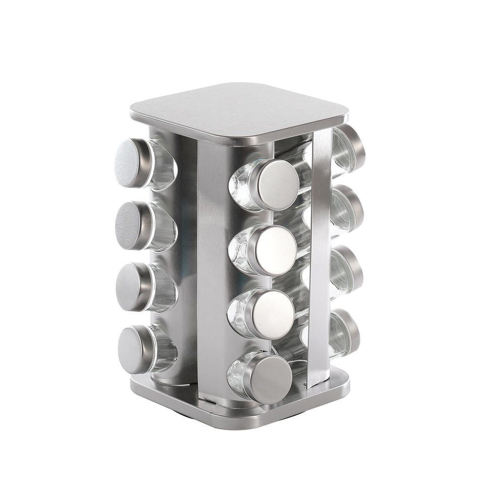 Pot de tempero à 16 pots Porte-épices tournant en acier inoxydable avec verres Pot à épices