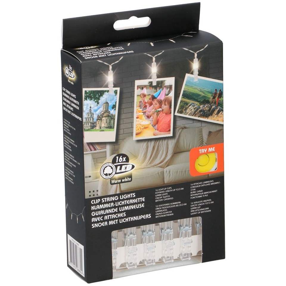 Chaîne lumineuse à 16 LED avec pinces de 2 m pour affichage de photos, guirlandes décoratives pour usage intérieur et extérieur