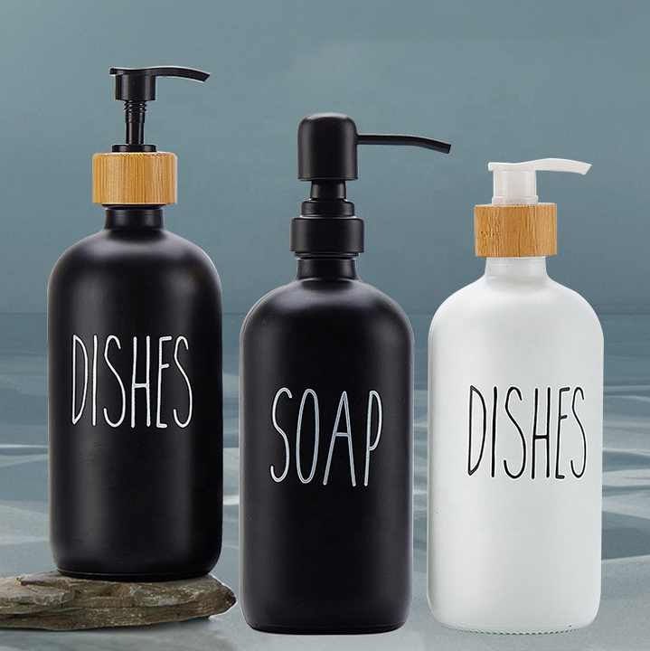Lot de 2 distributeurs de savon en verre mat, polyvalent et réutilisable, 16 oz, 500ml, avec pompe à pression