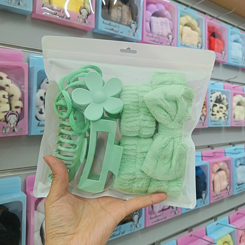 16-Piece Set Large Grabber Flower Hair Claw Headband with Wristbands