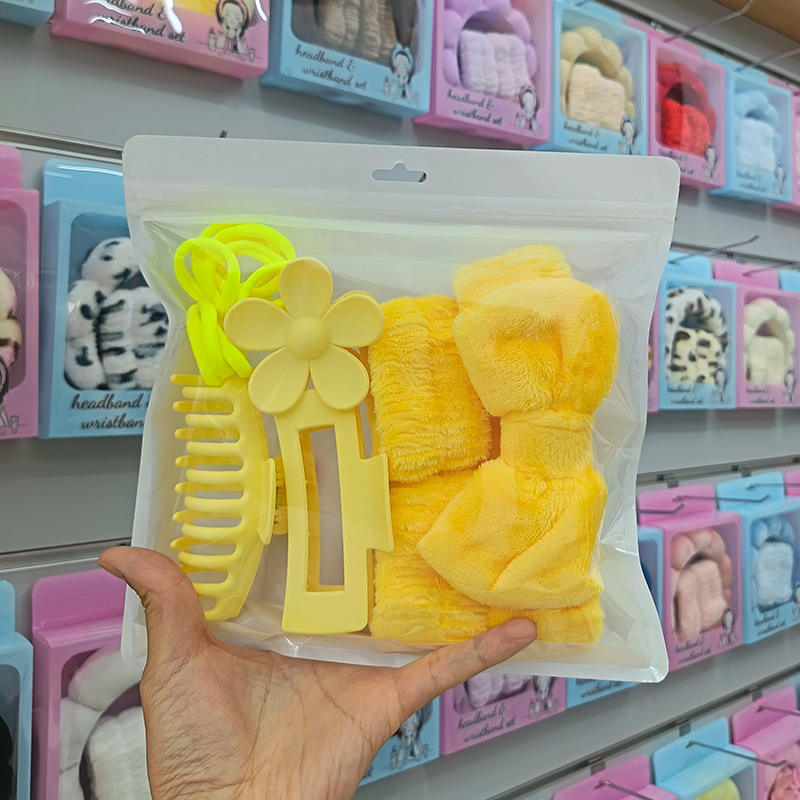 Nom du produit:Ensemble de 16 pièces : Grande pince à cheveux fleurie, bandeau et bracelets assortis.