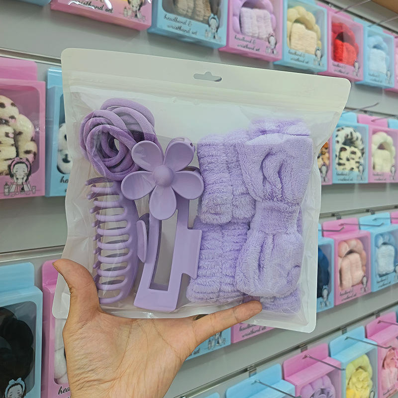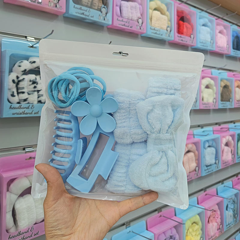 Ensemble de 16 pièces d'attaches à cheveux à haute élasticité Matte Frosted Large Grabber Flower Hair Griffe Bandeau avec bracelets Ensemble d'accessoires pour cheveux