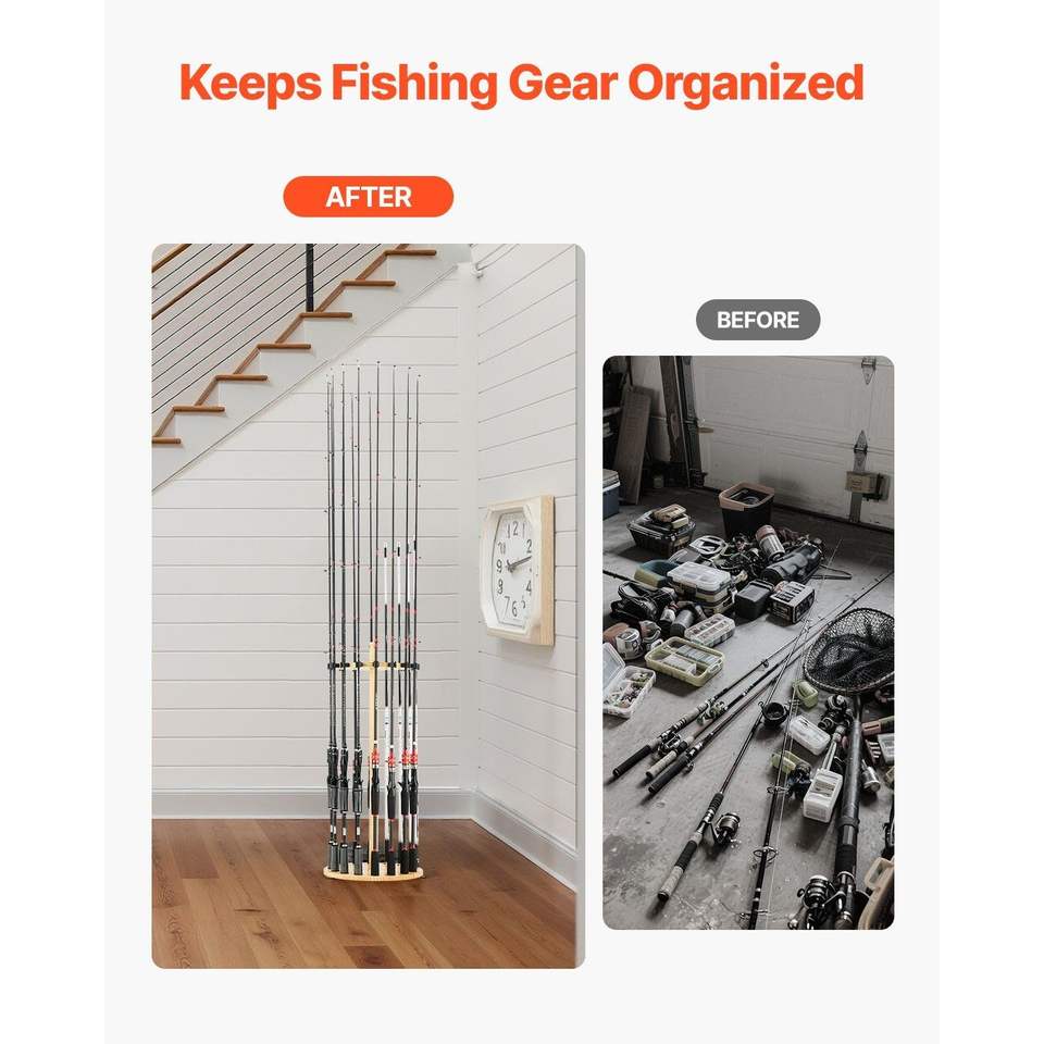 Support de rangement pour cannes à pêche à 16 pôles en bois pour garage, organisateur de cannes à pêche, support au sol peu encombrant