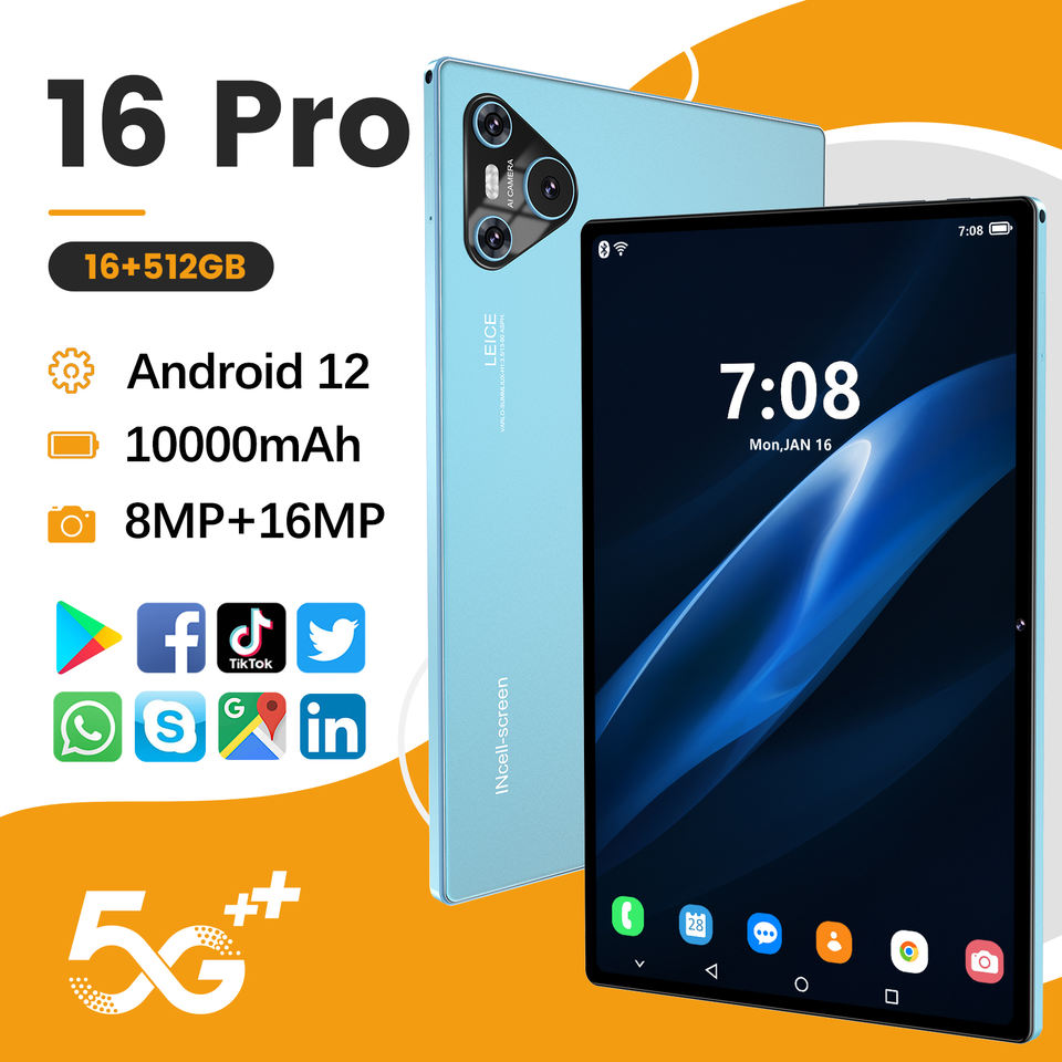 Tablette Tactile Android 16 Pro à Grande Mémoire et Grand Écran, Haute Qualité, Octa Core, Wi-Fi, avec Google Store