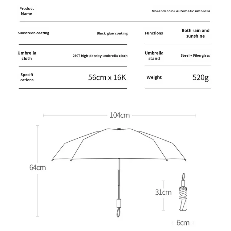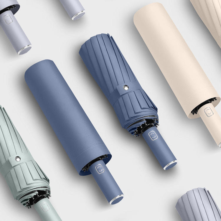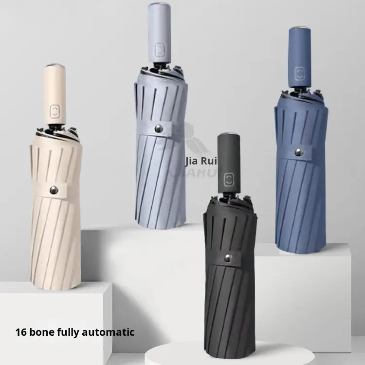 Parapluie pliant entièrement automatique 16 baleines 70% pour hommes et femmes, grand format, double protection solaire, revêtement noir, protection UV, cadeau promotionnel