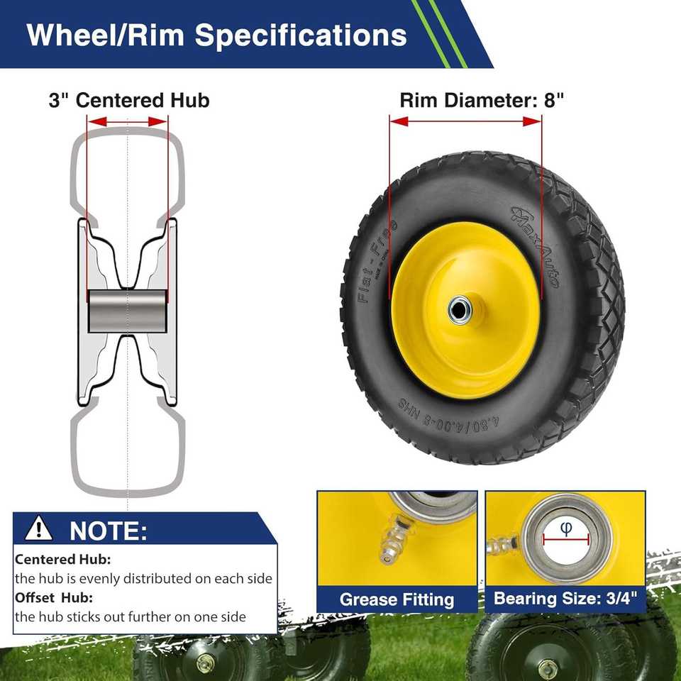 Roue de brouette anti-crevaison de 16 pouces, pleine, avec moyeu central de 3 pouces et tige de 3/4 pouce, avec graisseur, pour équipement de manutention