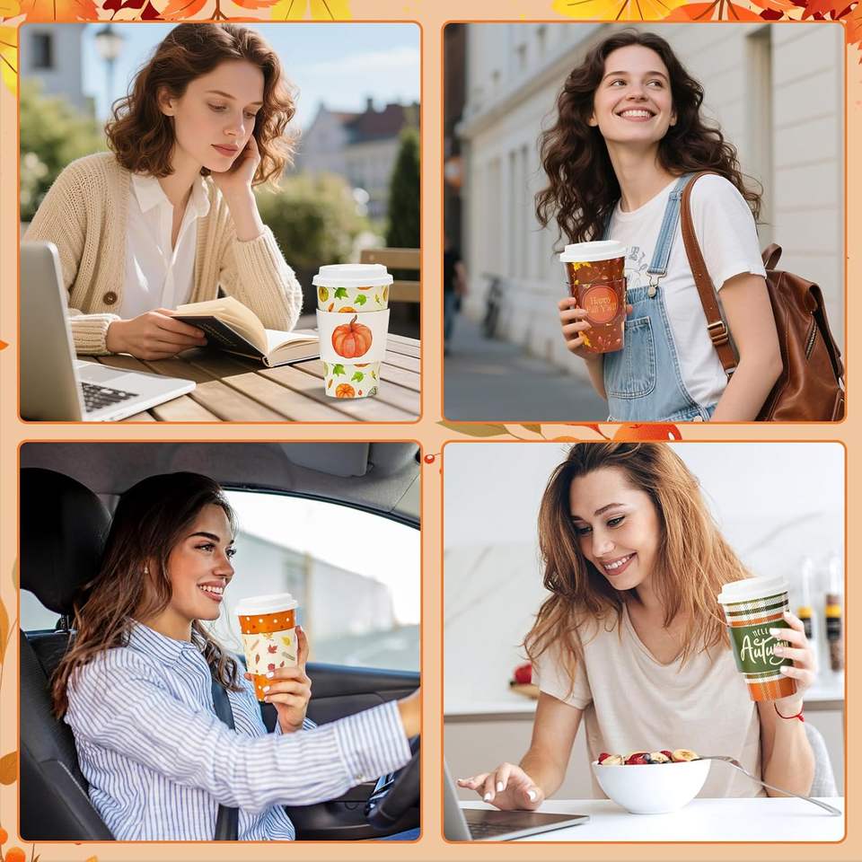 Tasses à café jetables 16 oz biodégradables sur le thème de l'automne Couvercles à encliqueter Citrouille Épice Latte pour Halloween Thanksgiving Automne
