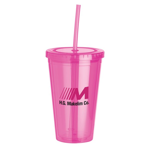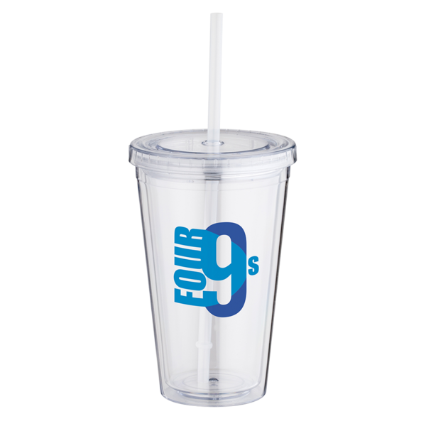 Le gobelet en plastique translucide à double paroi de 16 oz est livré avec une impression couleur en un seul endroit