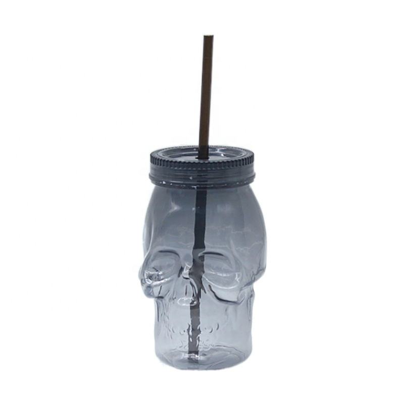 Nom du produit:Pot Mason en plastique en forme de crâne avec paille et couvercle