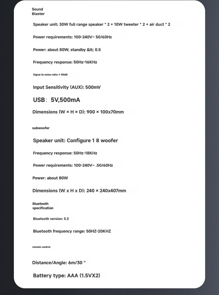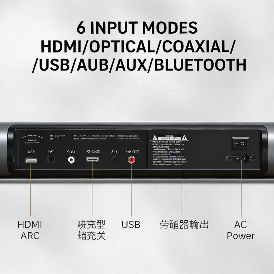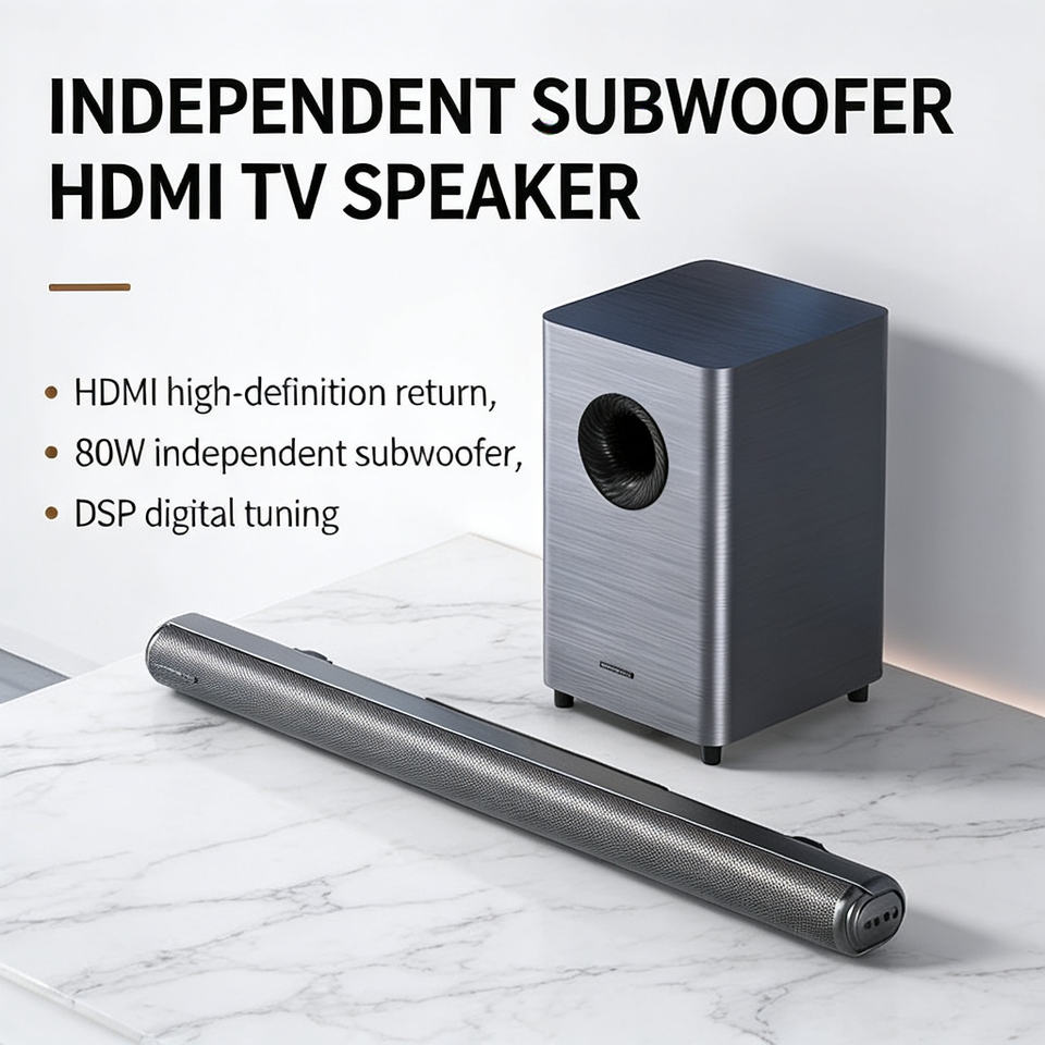Barre de son home cinéma sans fil 2.1 canaux 160W avec entrées USB/Aux, caisson de basses 8 pouces pour système audio surround 3D ARC pour TV HD-020