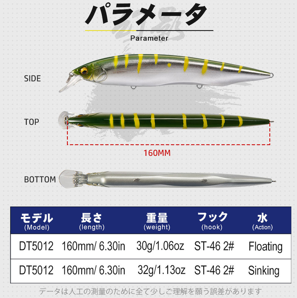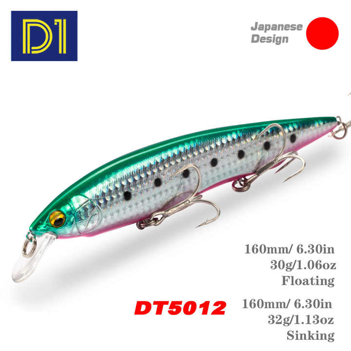Leurre dur flottant 160 mm 30 g et coulant 32 g, type Minnow, pour la pêche au bar, à la truite, au bar de mer, en eau salée et en eau douce