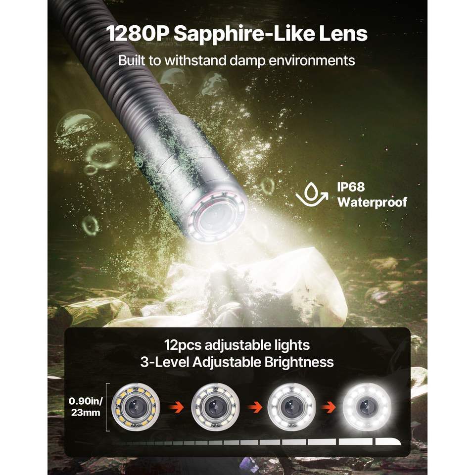 Caméra d'inspection de canalisation auto-nivelante 164 pieds/50 m avec écran HD 1080P de 4,3 pouces, étanche IP68, caméra de plomberie flexible pour surveillance IP