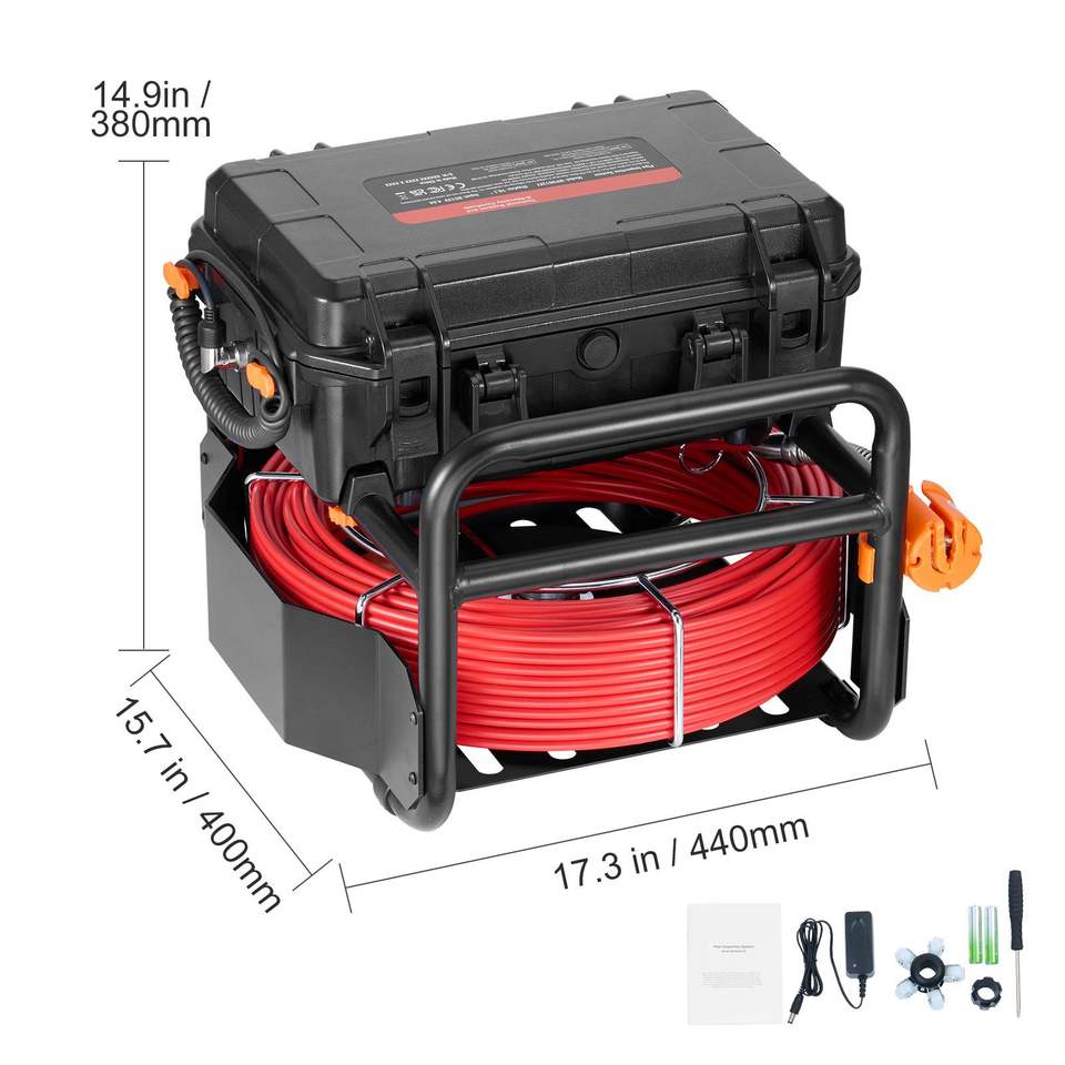 Caméra d'inspection analogique auto-nivelante de 50 m (165 pi) avec écran tactile de 10,1 pouces, émetteur 512 Hz, compteur de distance, caméra de canalisation flexible IP67