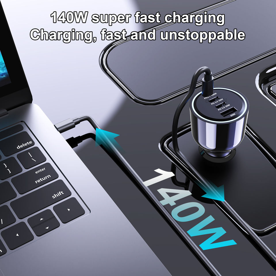 165W Super Quick Charge Multi-port 3 USB C Chargeur de voiture à charge rapide 160W 140W 100W 65W PD3.0 Mini chargeur portable pour ordinateur portable