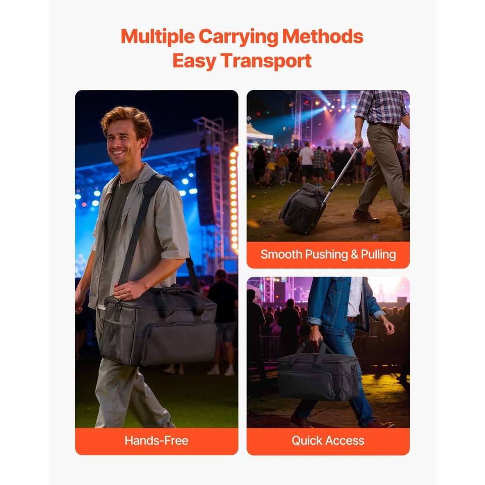 Sac de transport rembourré 1680D avec roulettes pour câbles DJ, 6 séparateurs détachables, étui de rangement pour équipement musical professionnel