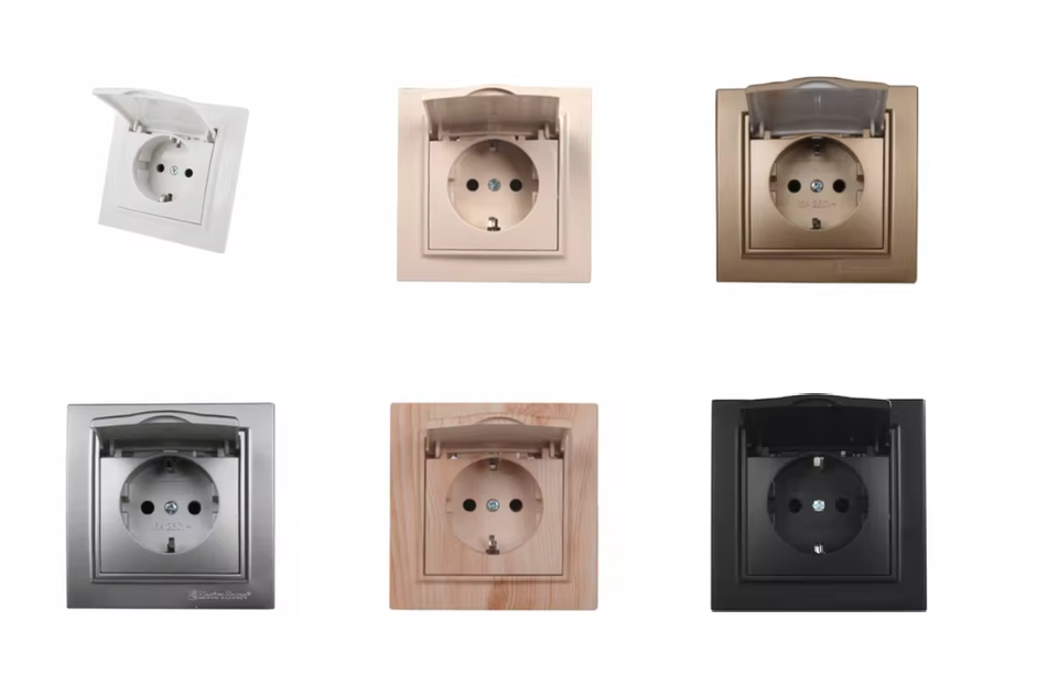 16A 220V IP22 Silver Stone Electrical Wall Power Socket With Grounding With Cover ABS Plastic EU UK Standard Recessed Socket