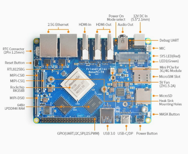 Nom du produit:NanoPC T6 conseil de développement Microchip rk3588 carte mère