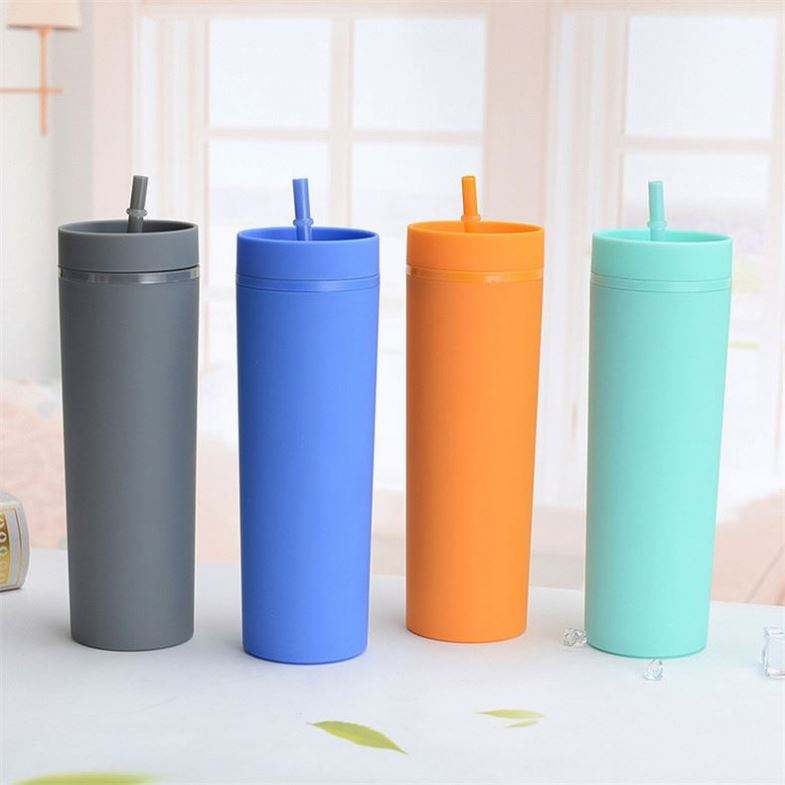 16Oz Acrylic Tumblers Double Wall Matte Pastel Colored Skinny Sweet Grain Multi-Color Skinny Tumblers With Lids and Straws