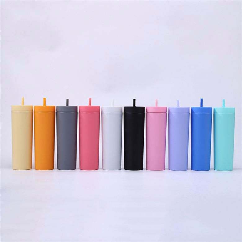 16Oz Skinny Tumbler Double Walled Acrylic Matte Plastic Bulk Tumbler With Straw and Lid Eco-Friendly Water Bottles