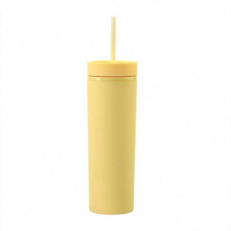 16Oz Skinny Tumbler Double Walled Acrylic Matte Plastic Bulk Tumbler With Straw and Lid Eco-Friendly Water Bottles