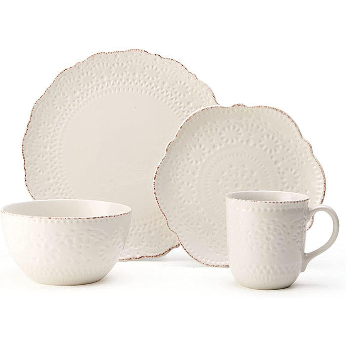 Service de vaisselle en grès crème château 16PCS pour quatre