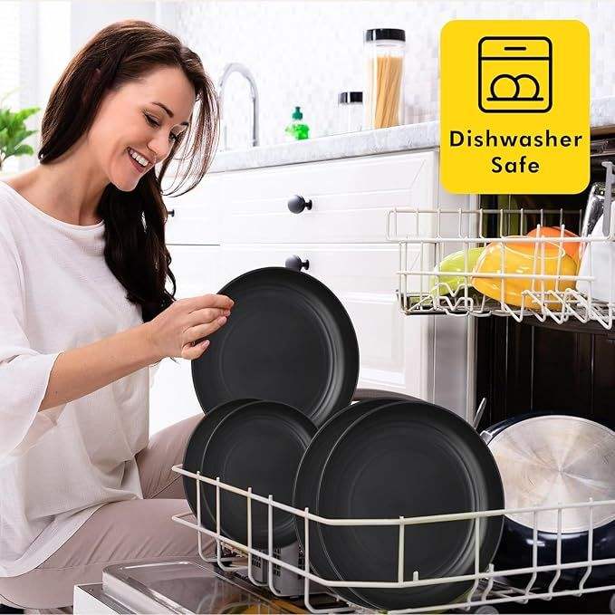 Ensemble de vaisselle en paille de blé incassable de 16 pièces, grande taille, pour la cuisine, utilisation intérieure et extérieure, assiettes en plastique réutilisables