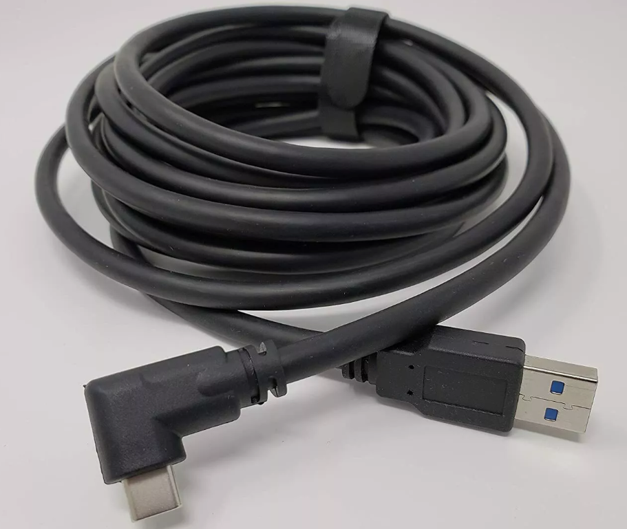 Câble de liaison de 16 pieds/5m pour cordon de charge Meta Quest 2/3 Type-C à angle droit vers USB a