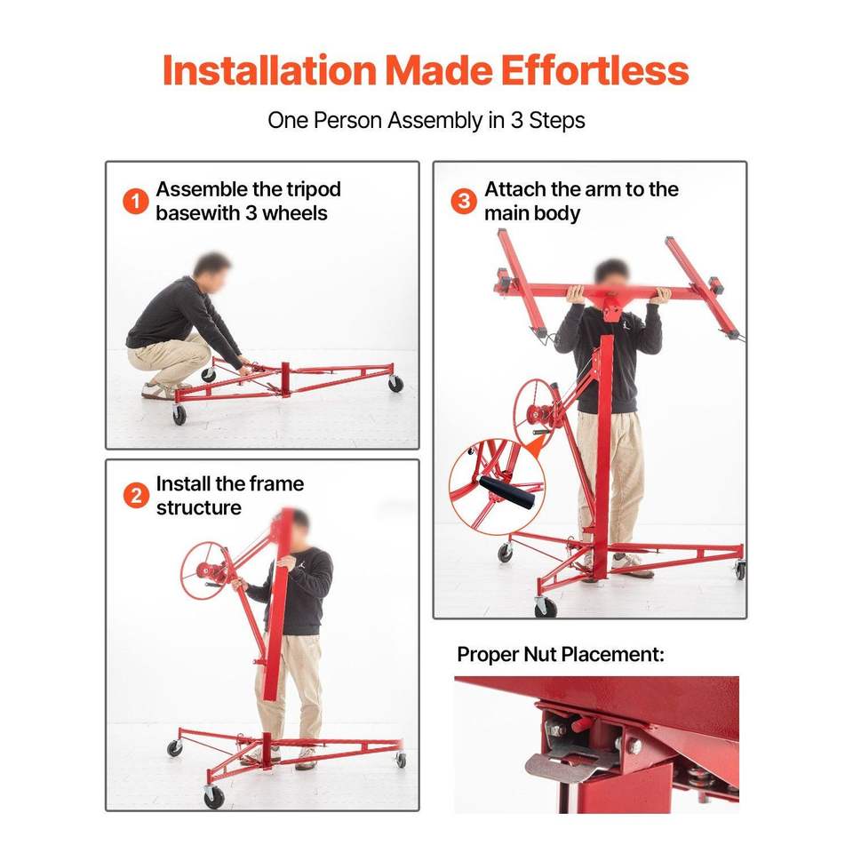Panneau de levage roulant pour cloisons sèches de 16 pieds, bras télescopique en acier, 3 roues verrouillables, construction 48x192