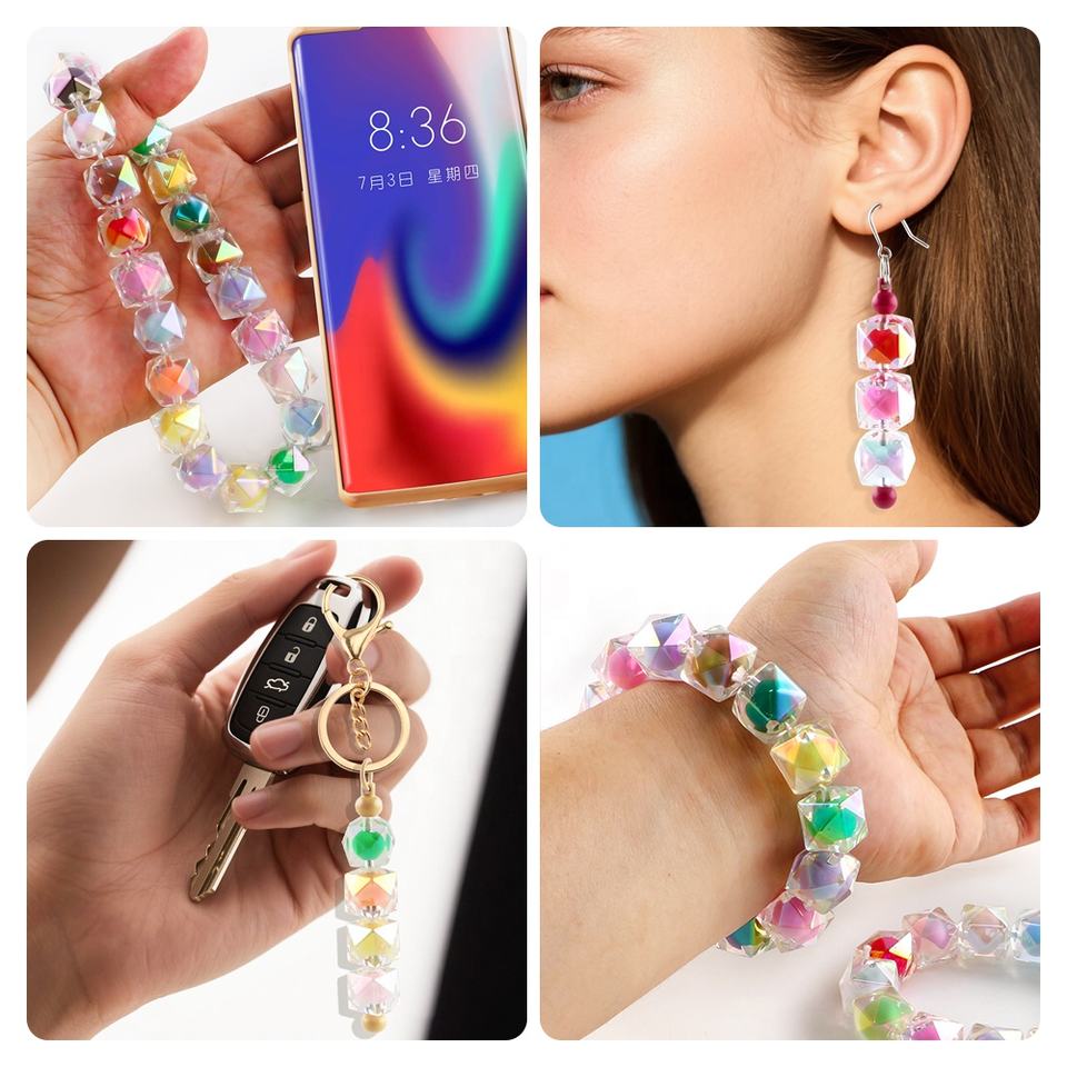 Perles acryliques de 16 mm avec revêtement AB, duo de couleurs scintillantes, géométriques creuses, de haute qualité, pour la fabrication de bijoux DIY, sac, bracelet, breloque de voiture