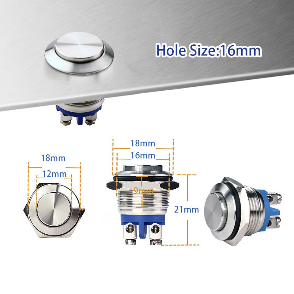 16mm Stainless Steel Aluminum IP65 Push Button Switch Black White Red Green Blue Yellow Cap Head Round Square