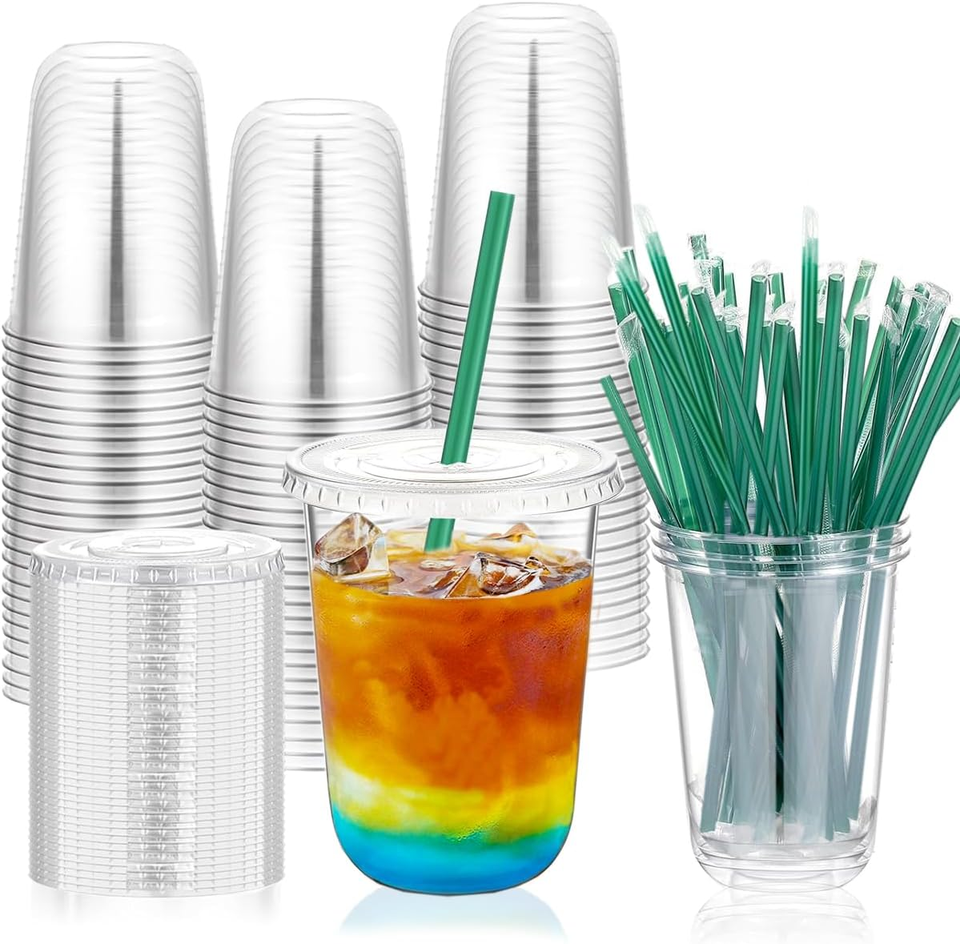 Gobelets en plastique jetables biodégradables et recyclables de 16 oz, avec couvercles modernes à fente pour paille, écologiques, anti-fuite, pour boissons froides, milkshakes