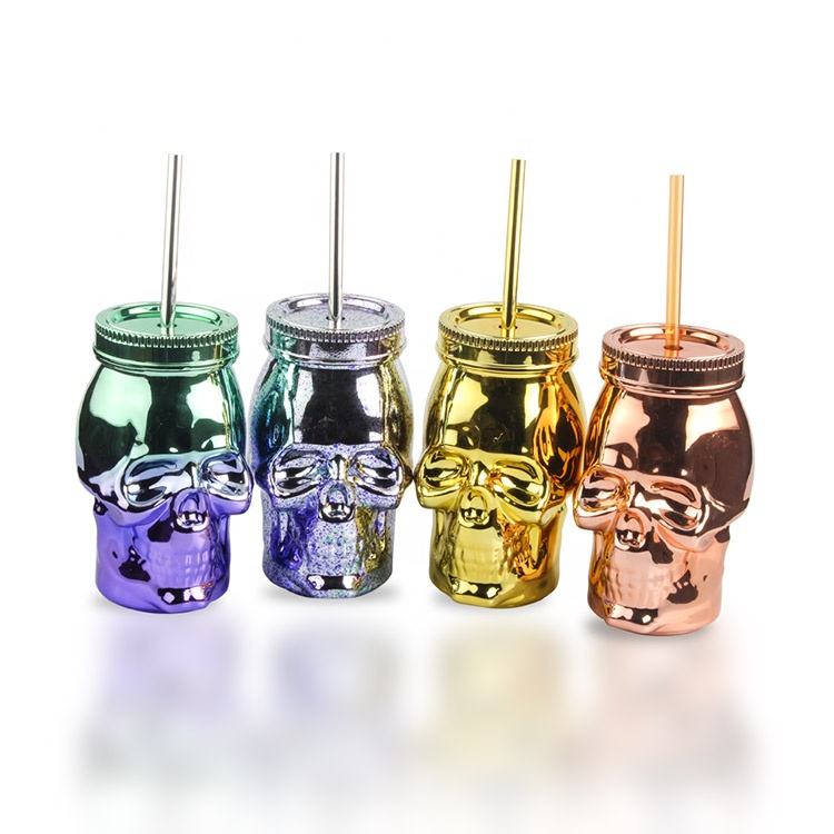 Bouteilles Mason en plastique personnalisées de 16 oz en forme de crâne, gobelets à boire originaux pour les fêtes, électroplaquage ajoutant de la commodité, réutilisables