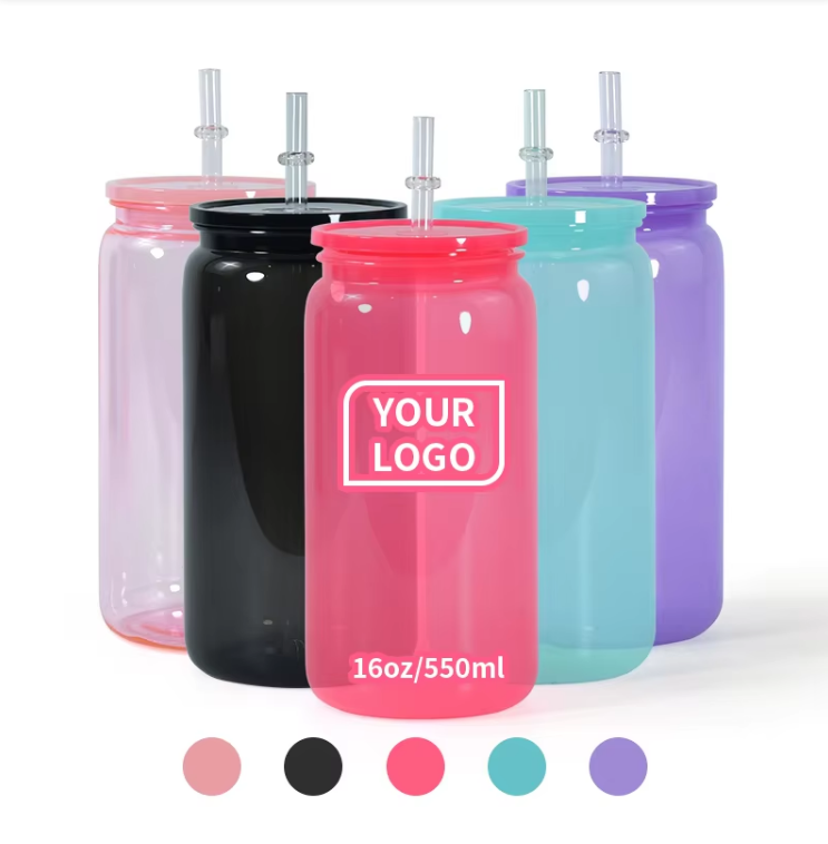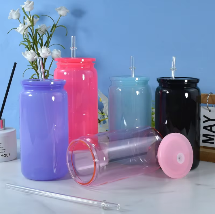 Pot en forme de verre à bière Libby en plastique acrylique de 16 oz, couleur unie, avec couvercle coloré pour cadeau d'été, bricolage