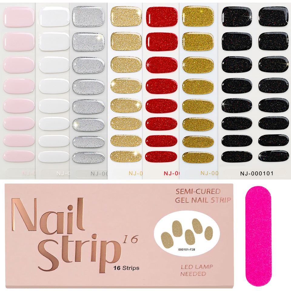 Autocollants d'enveloppements d'ongles en gel semi-durci à 16 pointes, couverture complète, extension UV/LED à paillettes dorées simples, curseurs durables