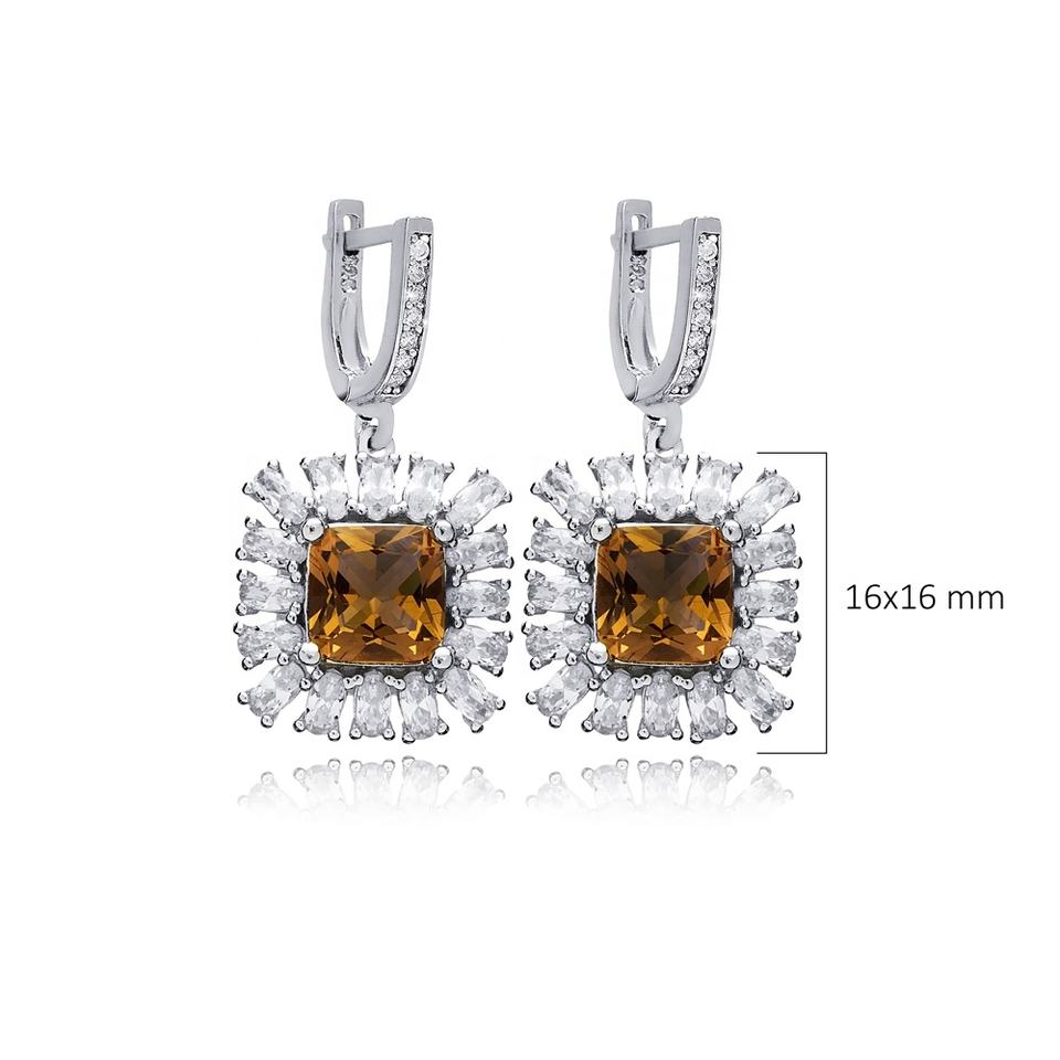16x16mm Carré Conception Sultanite CZ Pierre Dangle Boucle D'oreille En Argent Sterling 925 En Gros Fine Jewelry Turc
