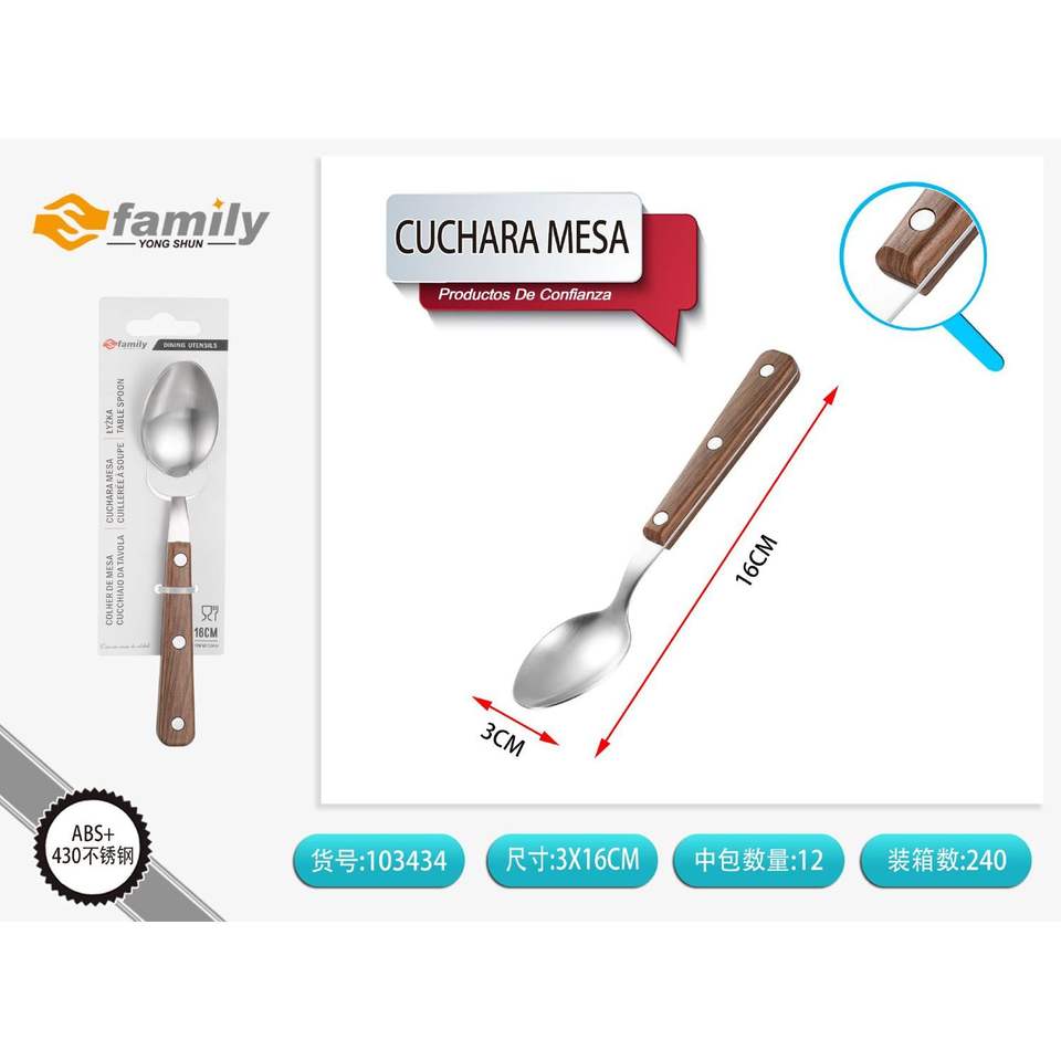 Cuillère de table familiale 16x3 cm avec manche en bois, passe au lave-vaisselle, ustensile de cuisine