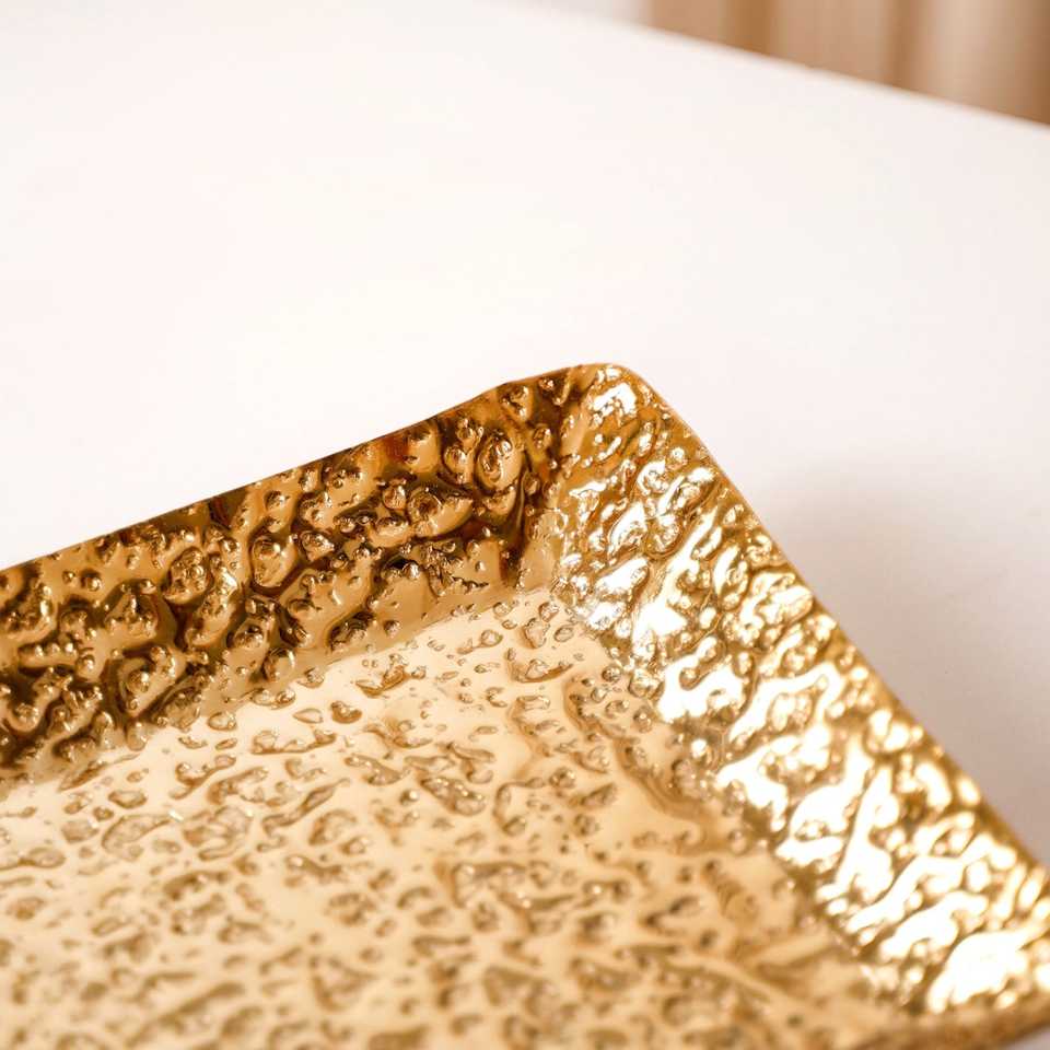 Plateau rectangulaire en aluminium doré de 16x6 pouces, résistant à la rouille, texturé, motif martelé, design végétal, mobile