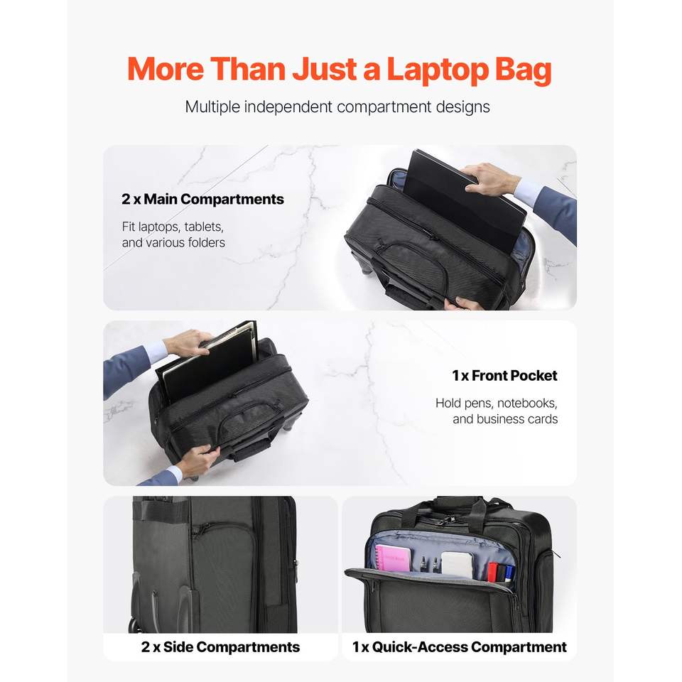 Sac à roulettes pour ordinateur portable de 17,3 pouces, sacoche à roulettes avec poignée télescopique, sac de transport pour ordinateur portable avec roulettes