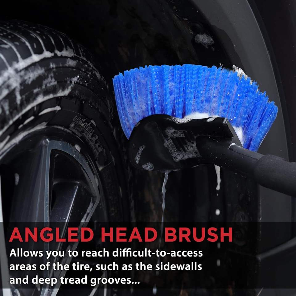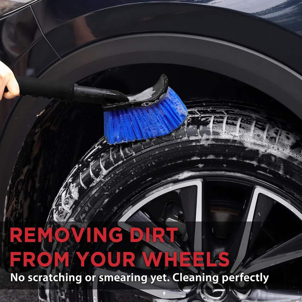 Brosse de lavage de voiture à long manche de 17,5 pouces, douce et sûre pour le nettoyage des flancs des pneus et des jantes, sans rayures, entretien automobile