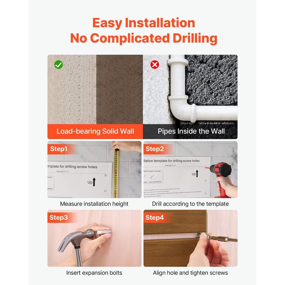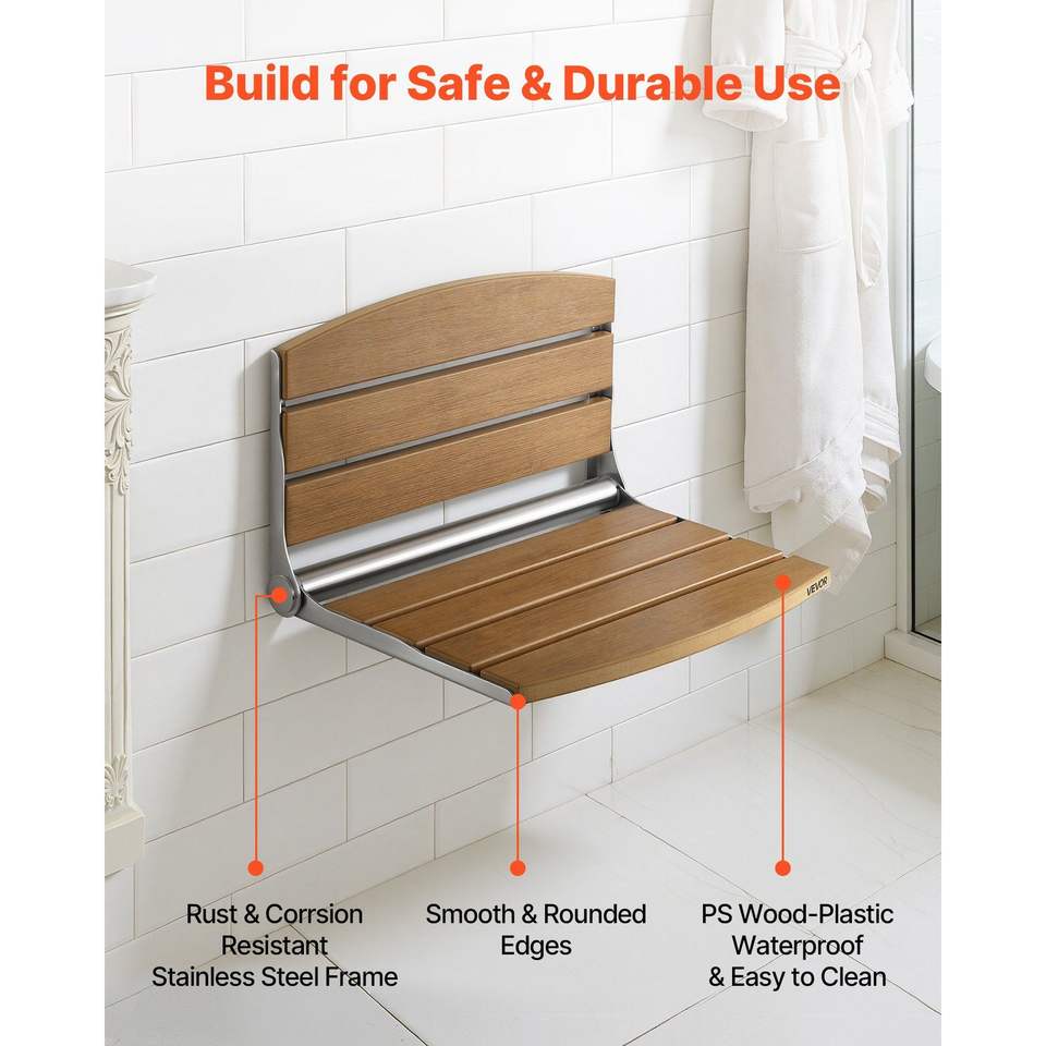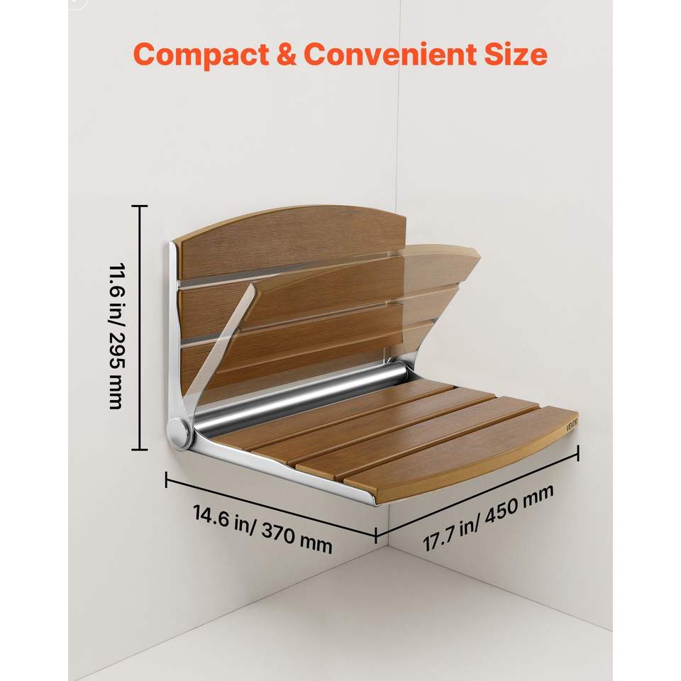 Siège de douche mural pliable de 17,7 pouces avec dossier, siège rabattable pour couloir de salle de bain - Équipement de sécurité pour salle de bain