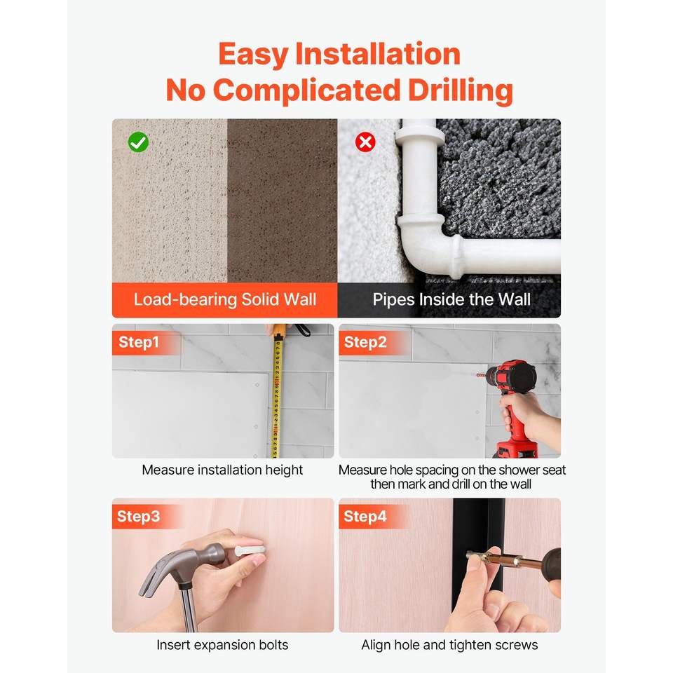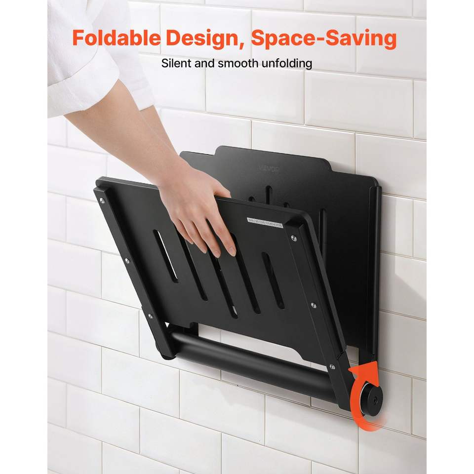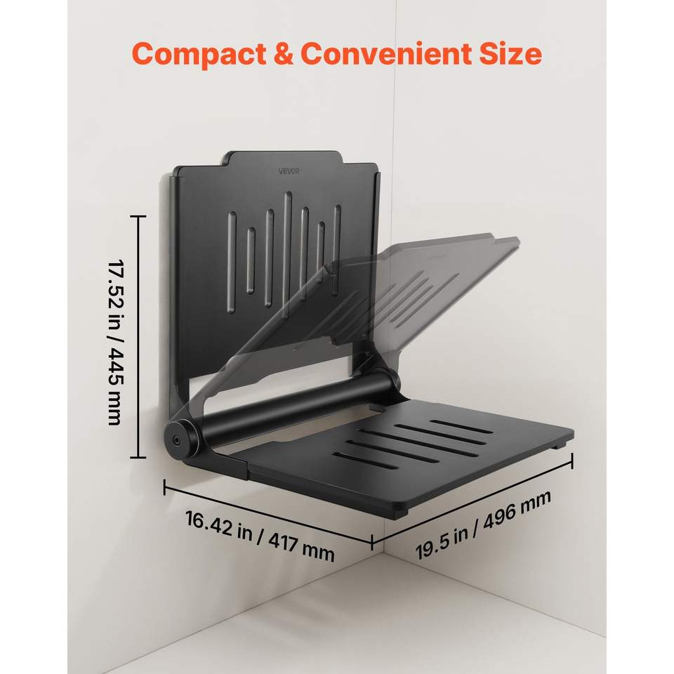 Siège de douche mural pliable de 17,8 pouces, banc pliant en plastique avec dossier, équipement de sécurité pour salle de bain, pour utilisation dans les couloirs