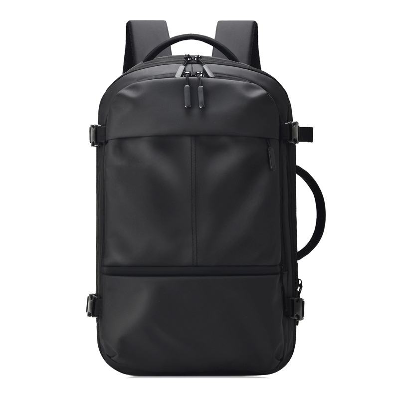17-Inch Expandable Leather Film Backpack Logo 30L Full Business Travel Computer Bag Waterproof PU Mesh Zipper Closure Polyester