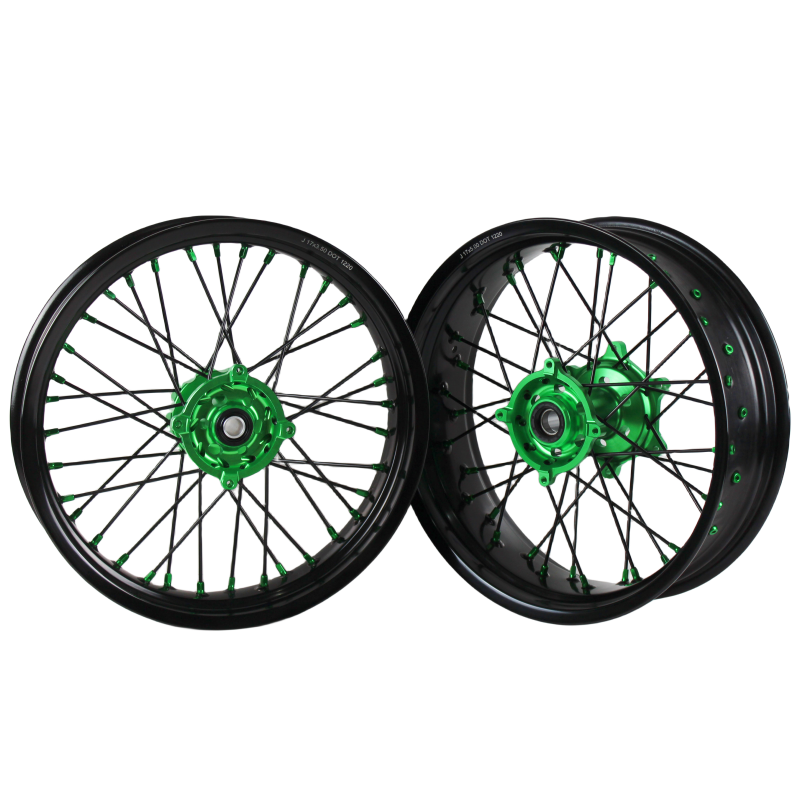 Jeu de jantes en alliage de moto Supermoto de 17 pouces pour KX250F KX450F 2006-2023 KX450 2019-2023 Jante noire à moyeu vert