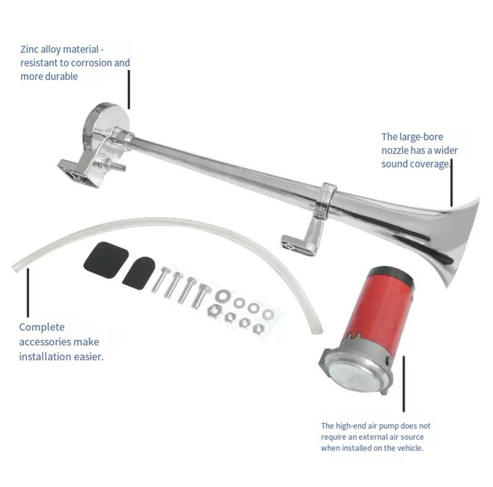 Klaxon à air à tube unique de 17 pouces sifflet de camion klaxon à air de train 12V moteur en alliage de zinc 150dB haut-parleur et klaxon