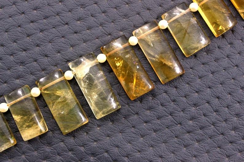 17 pièces de pierres précieuses de Citrine naturelle de qualité supérieure, forme rectangulaire lisse, pierre de naissance de novembre, perles de Briolette